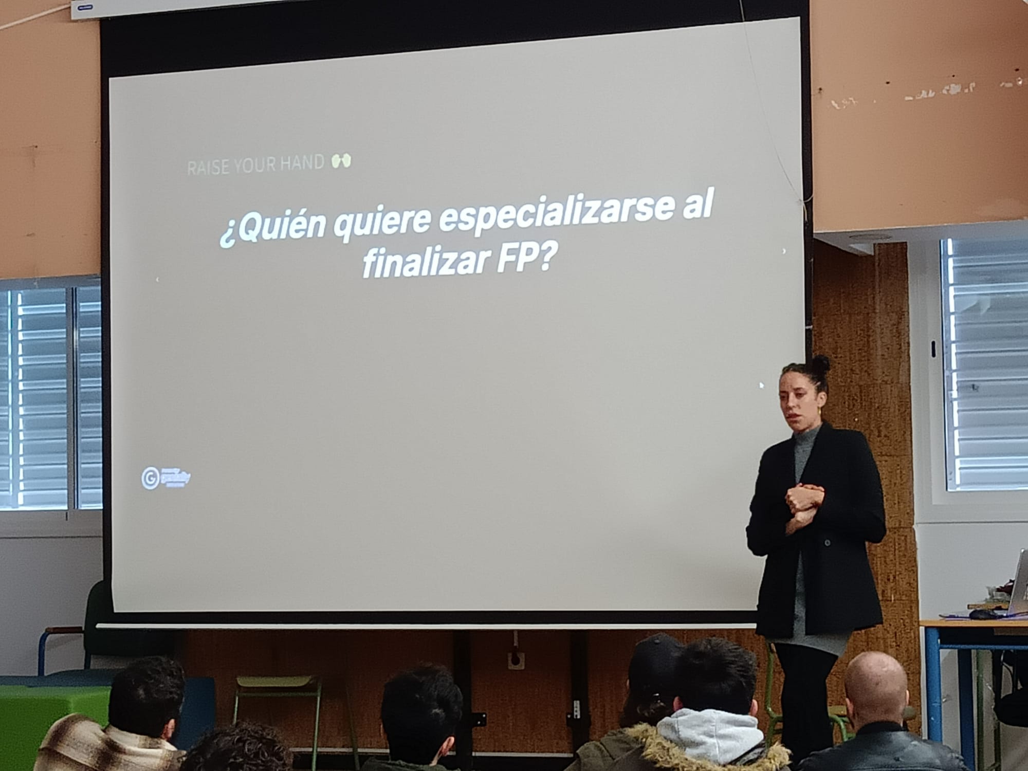 El alumnado mostró desde el comienzo un alto grado de participación, planteando preguntas, compartiendo inquietudes y mostrando interés por las oportunidades de desarrollo profesional que ofrece el sector. La interacción permitió enriquecer el encuentro y conectar la teoría que se trabaja en el aula con la realidad empresarial.